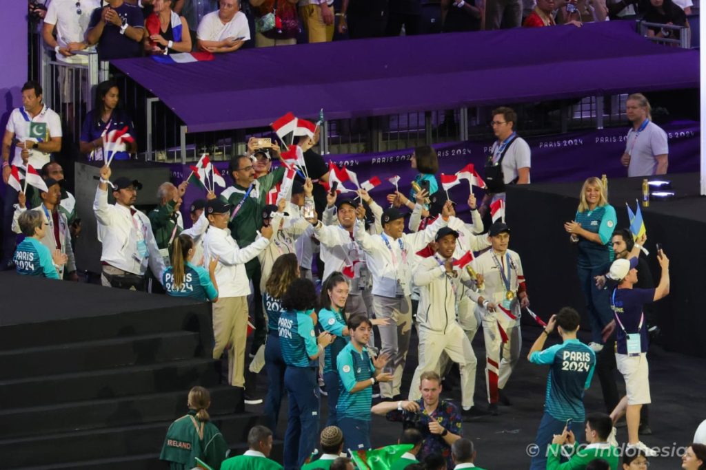 PARIS (11/8/2024) – Olimpiade Paris 2024 menutup tirainya dengan gemilang, menyaksikan Defile Tim Indonesia beranggotakan 15 orang yang di antaranya terdapat dua pahlawan peraih medali emas. Atlet panjat tebing Veddriq Leonardo dan lifter angkat besi Rizki Juniansyah tampil memukau dalam balutan busana rancangan desainer kenamaan, Didit Hediprasetyo.