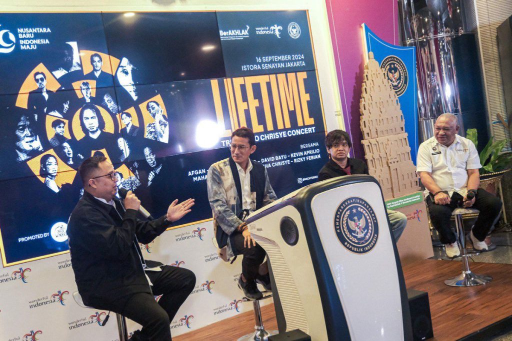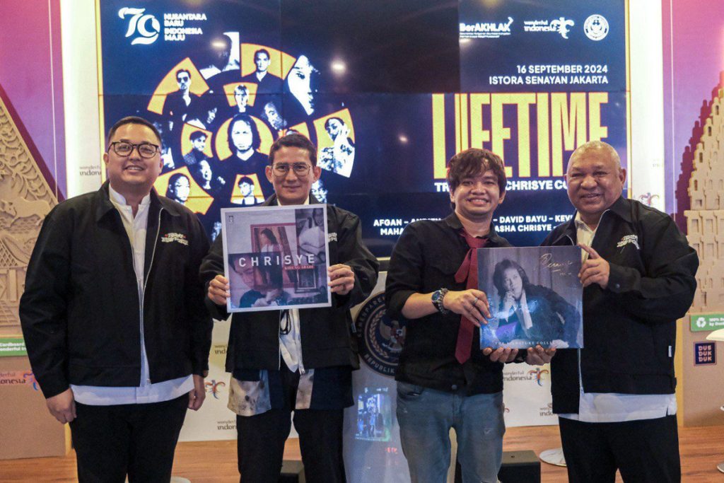 Jakarta, 26 Agustus 2024 – Menteri Pariwisata dan Ekonomi Kreatif/Kepala Badan Pariwisata dan Ekonomi Kreatif (Menparekraf/Kabaparekraf) Sandiaga Salahuddin Uno mendukung penyelenggaraan “Lifetime Tribute To Chrisye Concert” pada 16 September 2024 di Istora Senayan, Jakarta.