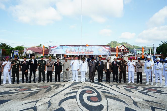 Upacara Dirgahayu Kota Sorong ke-26 mengusung tema “Tahun Baru, Mimpi Baru, Pembangunan Baru” dan dipimpin langsung oleh Walikota Sorong Septianus Lobat, S.H., MPA., selaku Inspektur Upacara.
