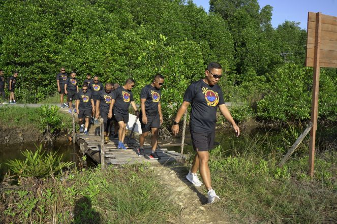 Olahraga pagi diawali dengan pengecekan kondisi kesehatan, dilanjutkan dengan pemanasan guna menghindari cedera saat beraktivitas fisik. Setelah itu para perwira melaksanakan jalan sehat mengelilingi area Kesatrian Marinir Agoes Soebekti.